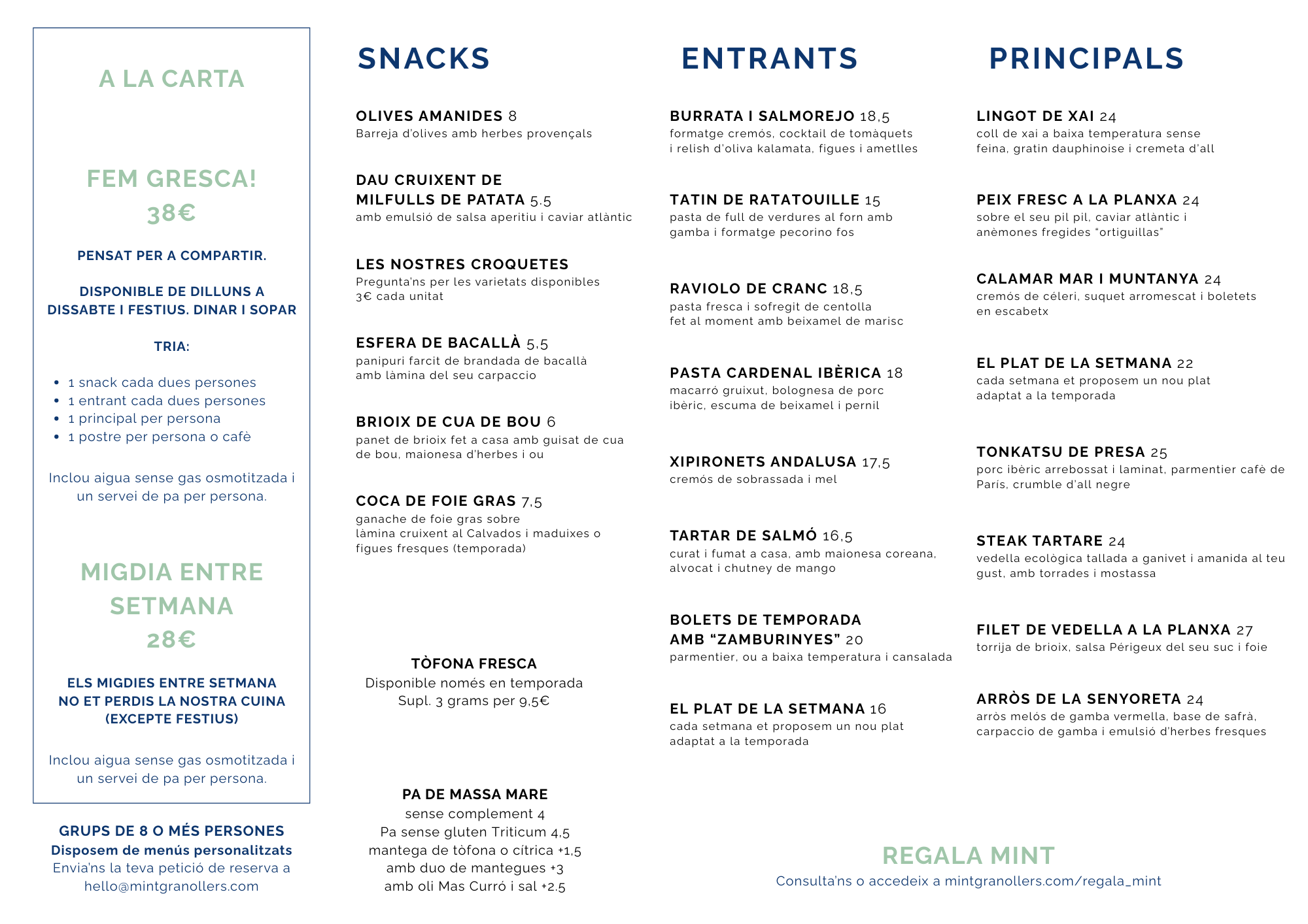 EN CONSTRUCCIÓ. CONSULTA LA NOSTRA PROPOSTA GASTRONÒMICA Entra a Mintgranollers.com/qr per a veure la carta y menús en pdf (clica la icona en forma de càmera)